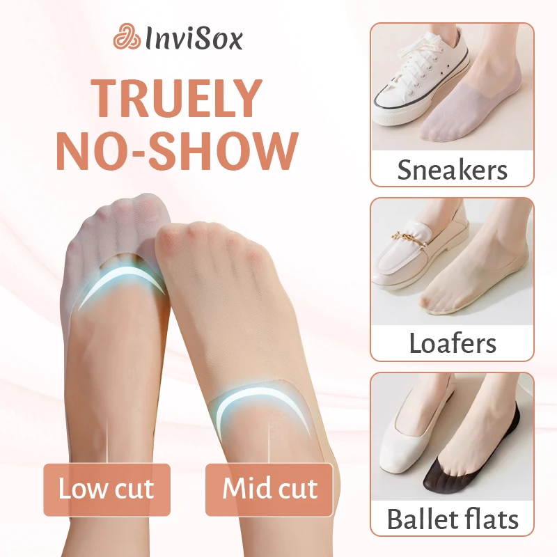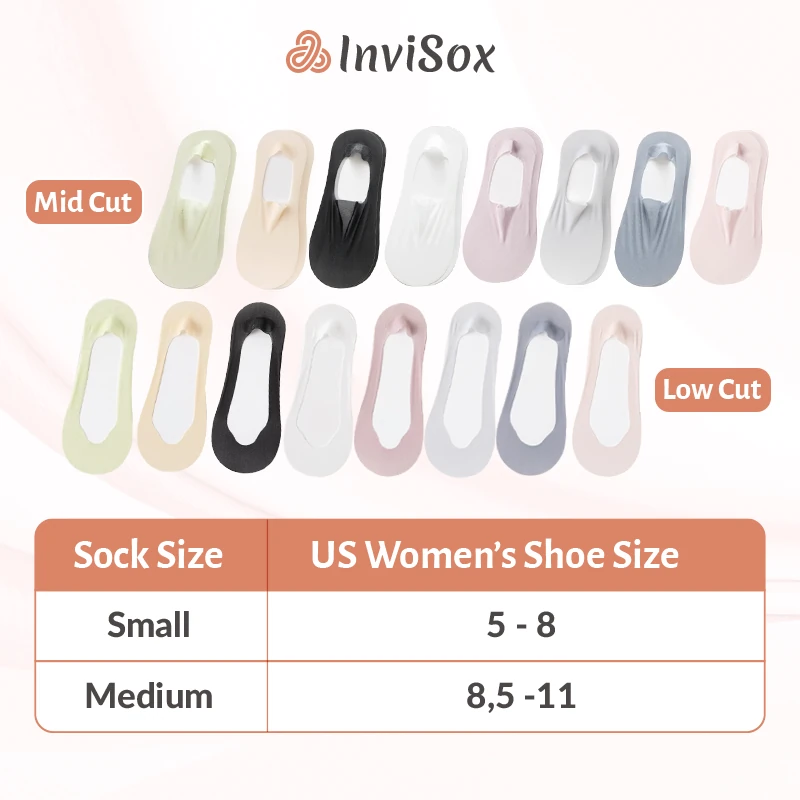 Choose your perfect fit with Invisox's low cut and mid cut versions, ensuring seamless integration with any shoe style, from sneakers to loafers to ballet flats or high heels.